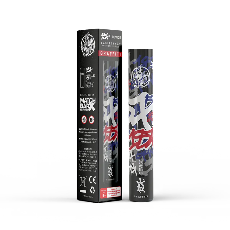 Das 187 Basisgerät von 187 ist ein kompaktes, leistungsstarkes und attraktiv aussehendes Vape-System. Der Akku hat eine Kapazität von 500 mAh und wird über ein USB-C Ladekabel aufgeladen, welches nicht im Lieferumfang enthalten ist. Er liegt gut in der Hand und kann durch 3 kurze Züge innerhalb von 2 Sekunden ein- oder ausgeschaltet werden.
