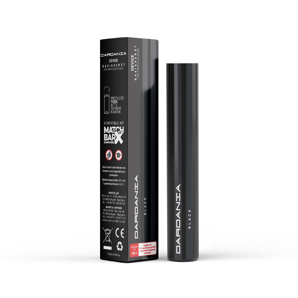 Das Dardania Basisgerät von Dardan ist ein kompaktes, leistungsstarkes und attraktiv aussehendes Vape-System. Der Akku hat eine Kapazität von 500 mAh und wird über ein USB-C Ladekabel aufgeladen, welches nicht im Lieferumfang enthalten ist. Er liegt gut in der Hand und kann durch 3 kurze Züge innerhalb von 2 Sekunden ein- oder ausgeschaltet werden.
