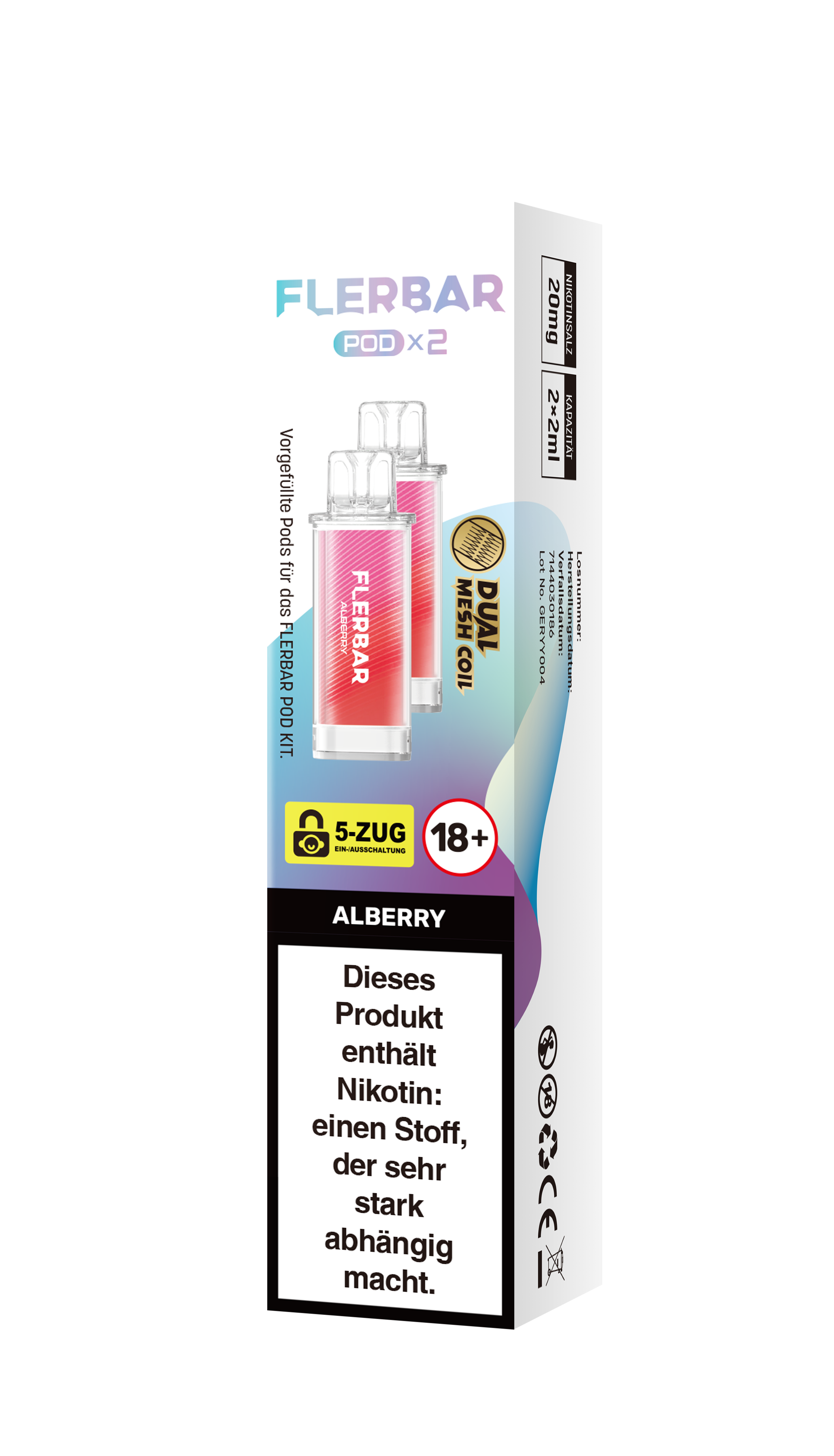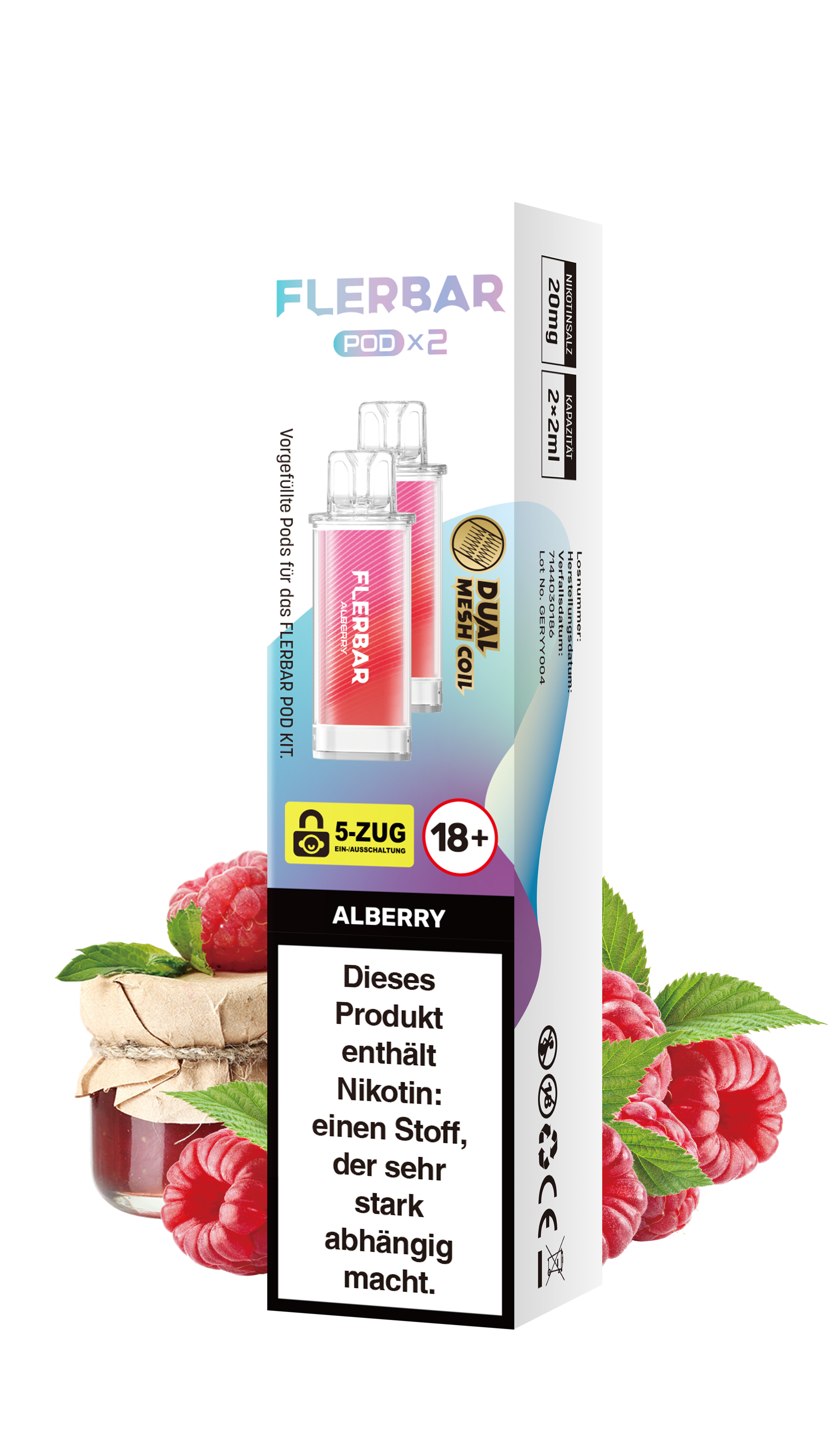 Das Flerbar Pod ist eine vorbefüllte Liquid Kartusche mit 2 ml Füllmenge welche auf die Flerbar Pod Kits (Basisgeräte) passt und den oberen Teil inkl. Mundstück sowie den Geschmacksträger darstellt.