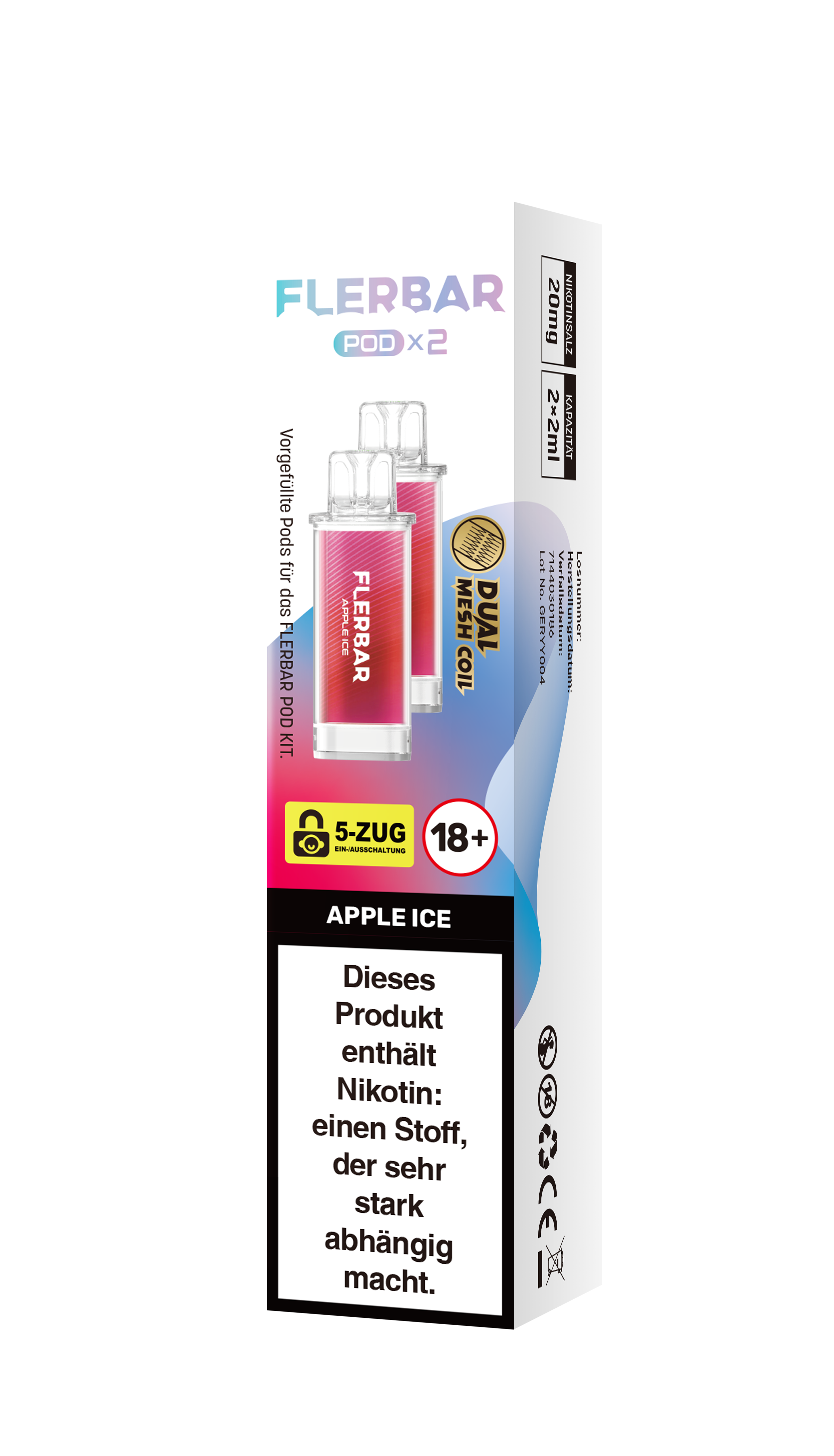 Das Flerbar Pod ist eine vorbefüllte Liquid Kartusche mit 2 ml Füllmenge welche auf die Flerbar Pod Kits (Basisgeräte) passt und den oberen Teil inkl. Mundstück sowie den Geschmacksträger darstellt.