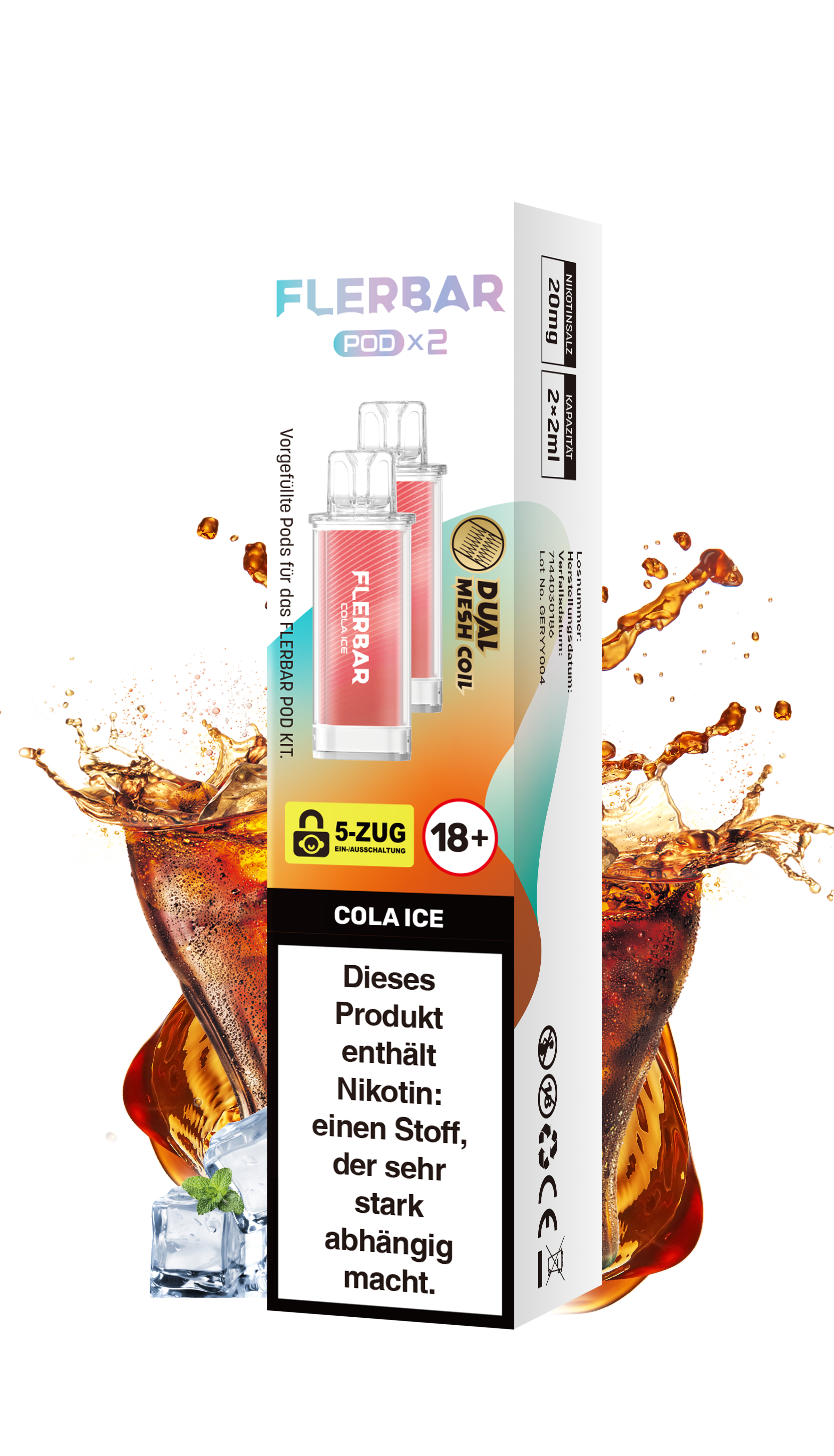 Das Flerbar Pod ist eine vorbefüllte Liquid Kartusche mit 2 ml Füllmenge welche auf die Flerbar Pod Kits (Basisgeräte) passt und den oberen Teil inkl. Mundstück sowie den Geschmacksträger darstellt.