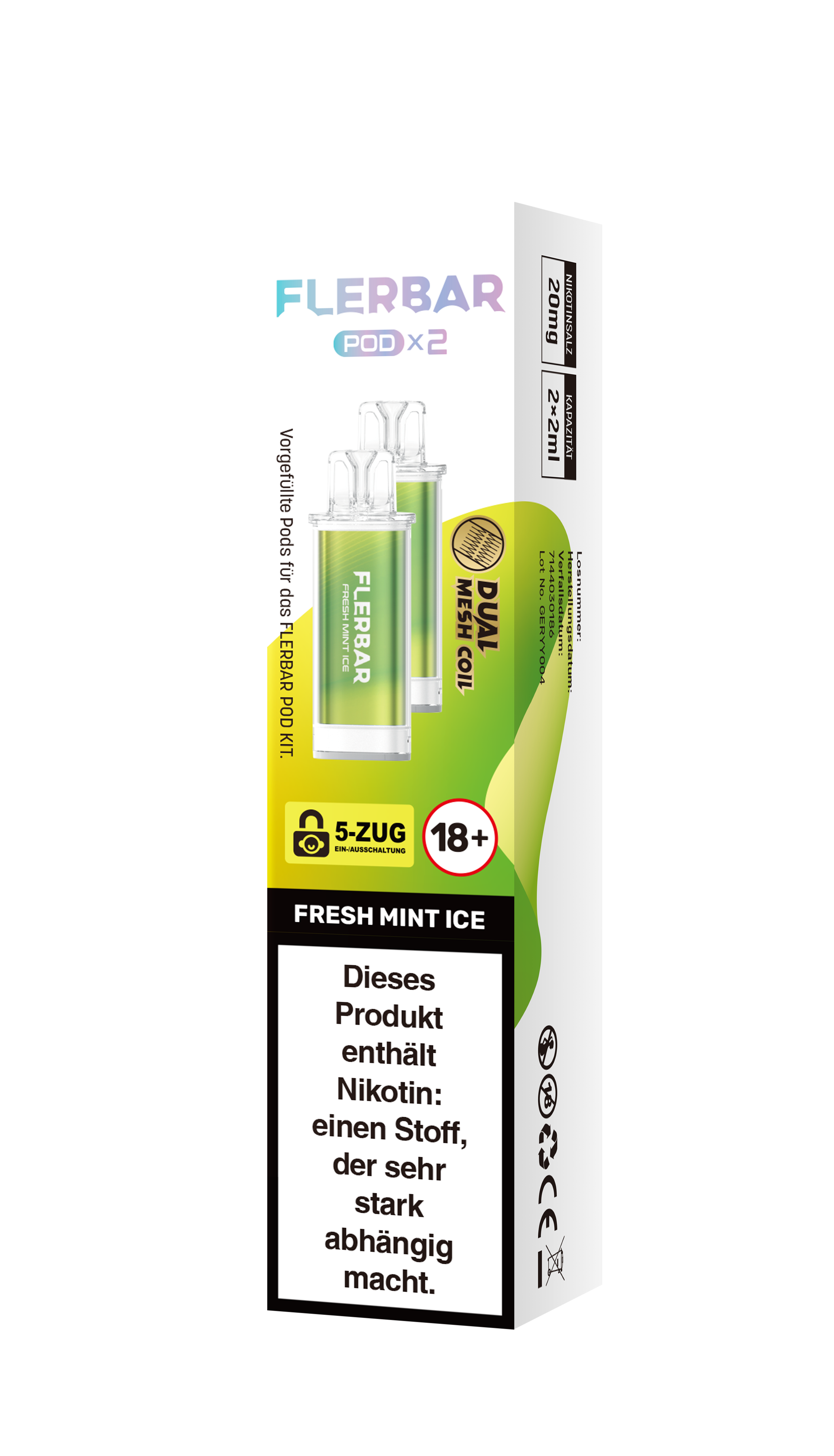Das Flerbar Pod ist eine vorbefüllte Liquid Kartusche mit 2 ml Füllmenge welche auf die Flerbar Pod Kits (Basisgeräte) passt und den oberen Teil inkl. Mundstück sowie den Geschmacksträger darstellt.