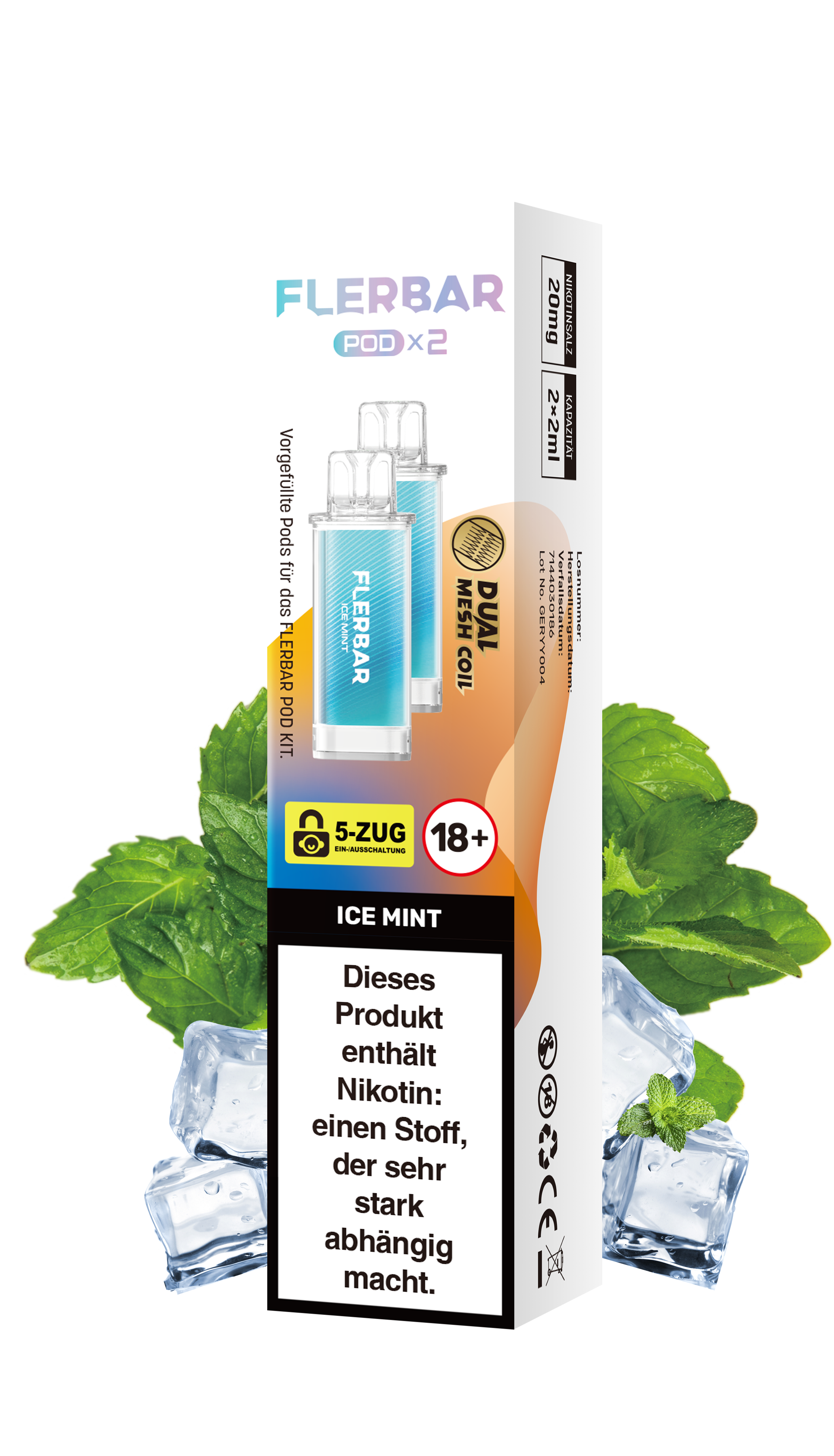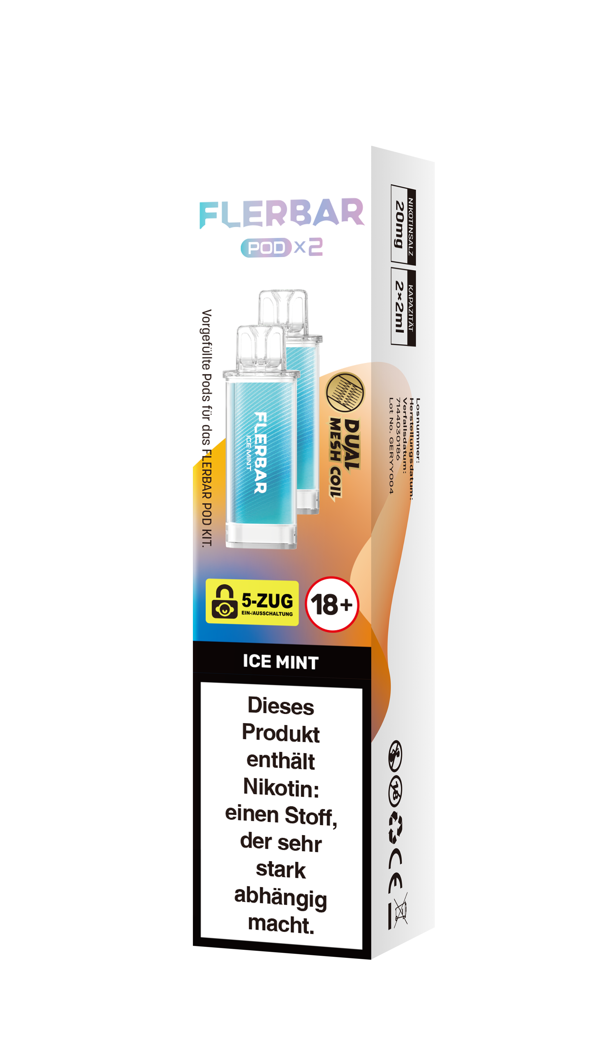 Das Flerbar Pod ist eine vorbefüllte Liquid Kartusche mit 2 ml Füllmenge welche auf die Flerbar Pod Kits (Basisgeräte) passt und den oberen Teil inkl. Mundstück sowie den Geschmacksträger darstellt.