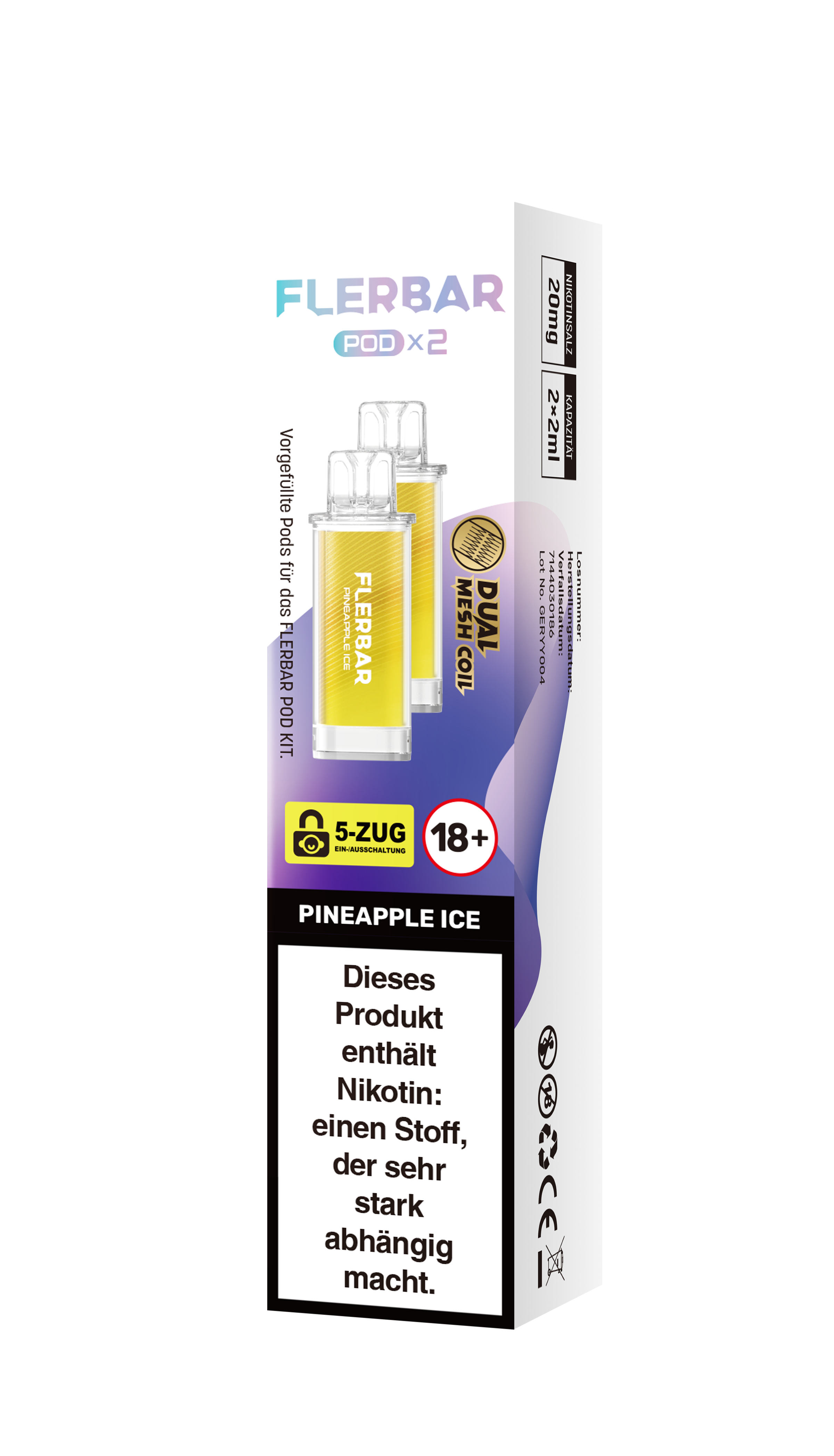Das Flerbar Pod ist eine vorbefüllte Liquid Kartusche mit 2 ml Füllmenge welche auf die Flerbar Pod Kits (Basisgeräte) passt und den oberen Teil inkl. Mundstück sowie den Geschmacksträger darstellt.