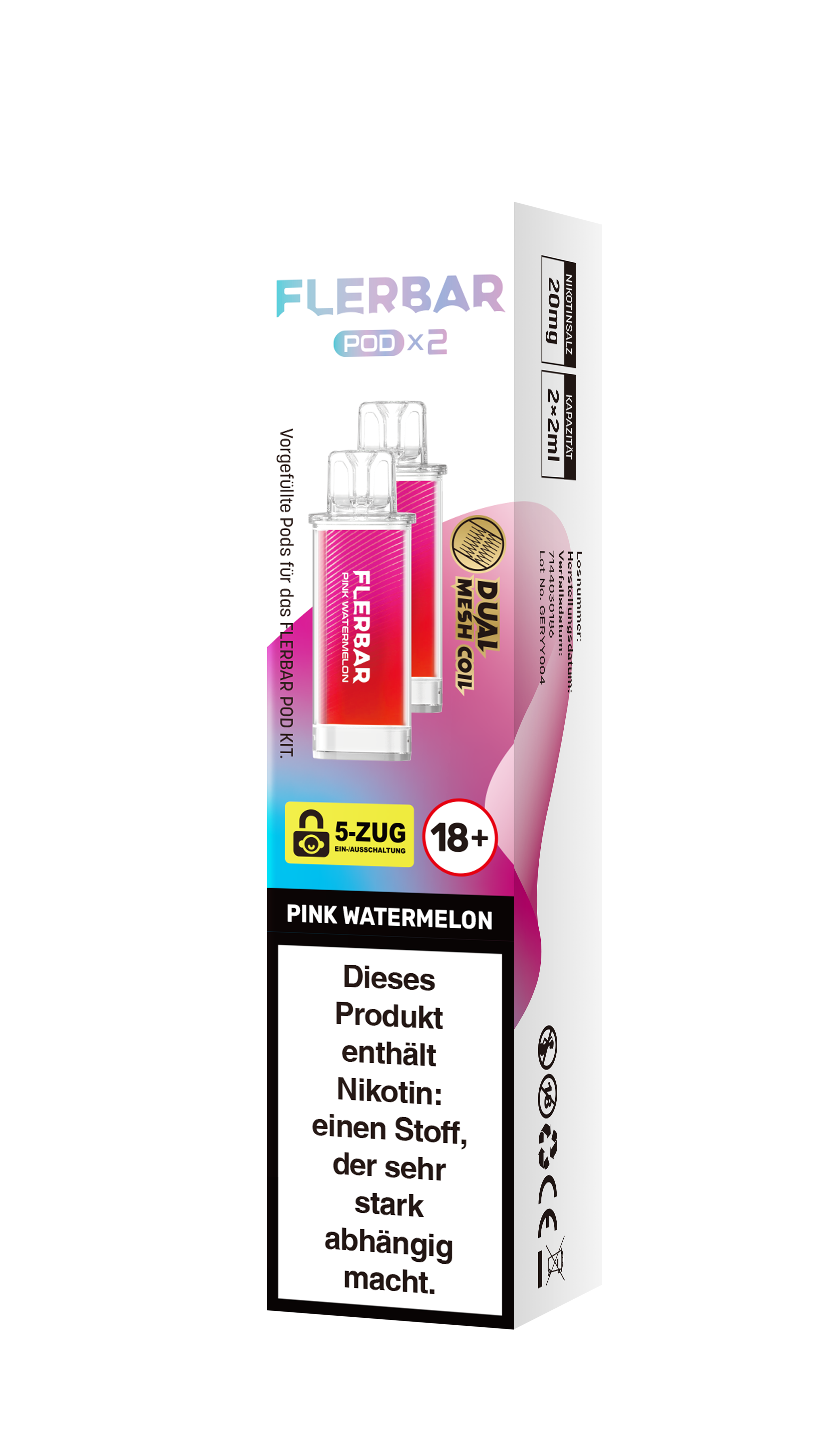 Das Flerbar Pod ist eine vorbefüllte Liquid Kartusche mit 2 ml Füllmenge welche auf die Flerbar Pod Kits (Basisgeräte) passt und den oberen Teil inkl. Mundstück sowie den Geschmacksträger darstellt.