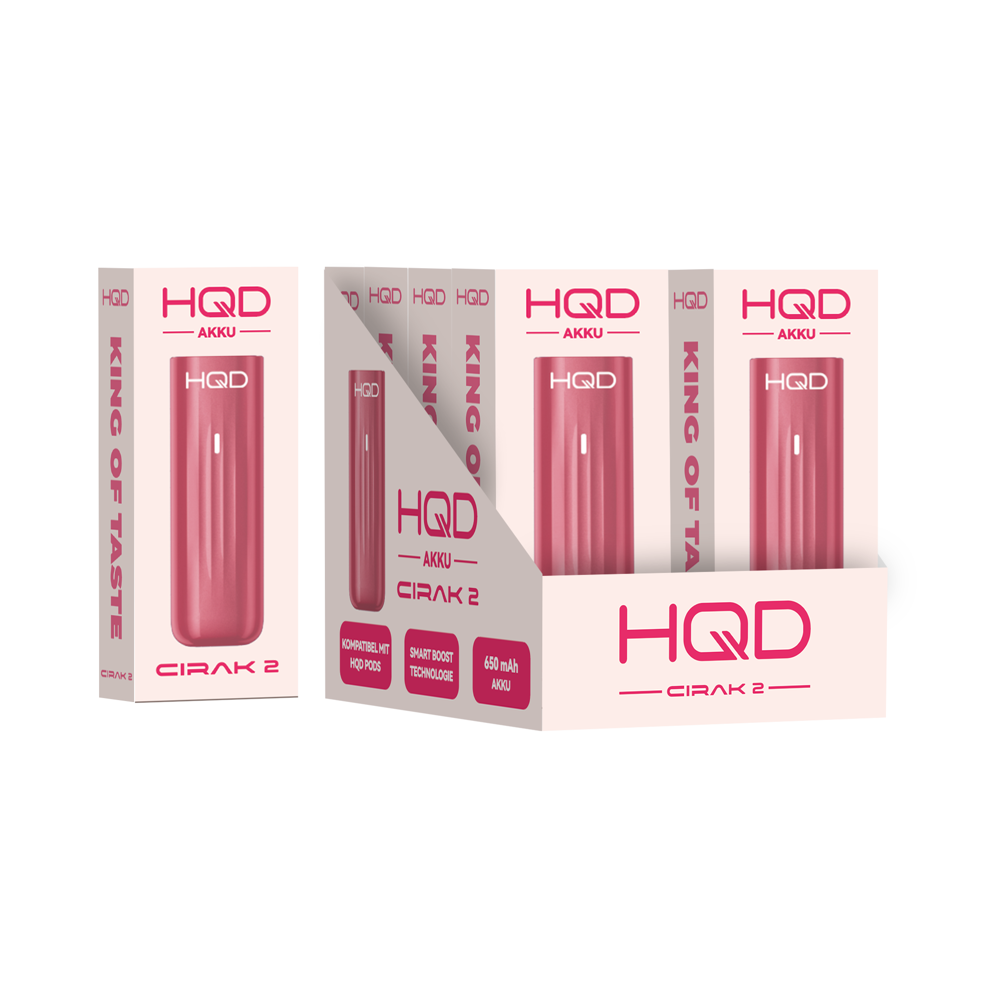 Das Cirak 2 Basisgerät von HQD ist ein kompaktes, leistungsstarkes und attraktiv aussehendes Vape-System. Der Akku hat eine Kapazität von 370 mAh und wird über ein USB-C Ladekabel aufgeladen, welches nicht im Lieferumfang enthalten ist. Er liegt gut in der Hand und kann durch 3 kurze Züge innerhalb von 2 Sekunden ein- oder ausgeschaltet werden.