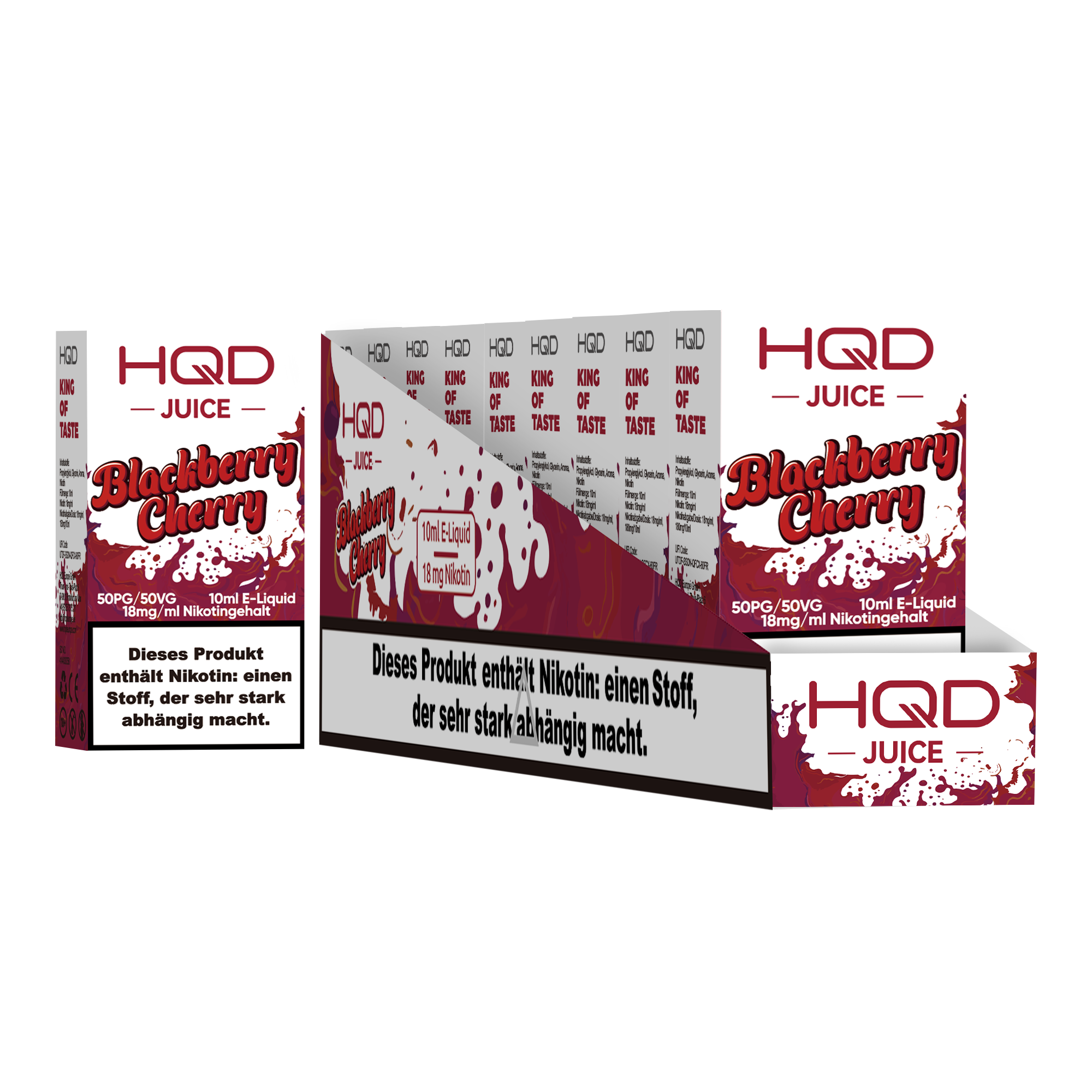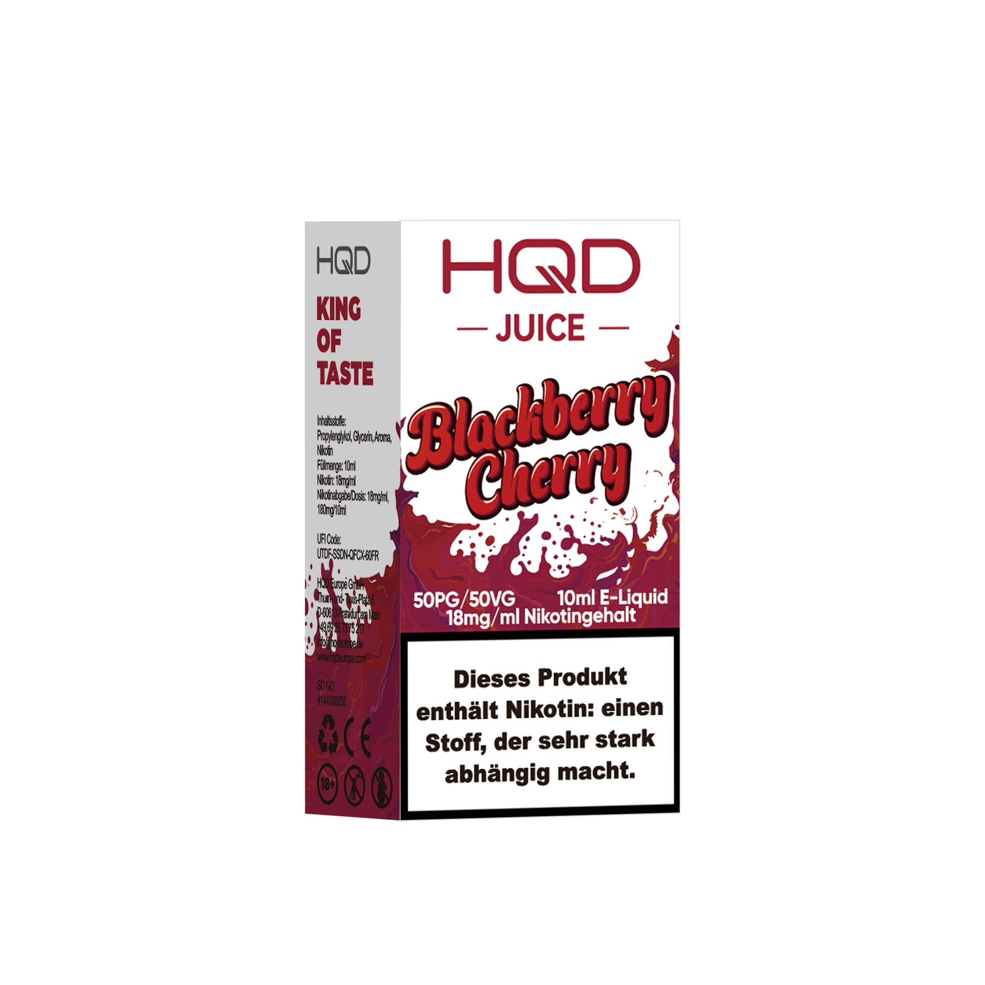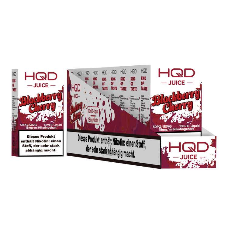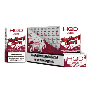 Produkthinweise: Die Verpackung der gelieferten Ware kann von der abgebildeten Verpackung abweichen, da der Hersteller jeder Zeit das Verpackungs-Design ändern kann. Bei Raumtemperatur vor direkter Sonneneinstrahlung geschützt lagern.HQD Juice Blackberry Cherry 10ml Liquid 18mg Nikotin