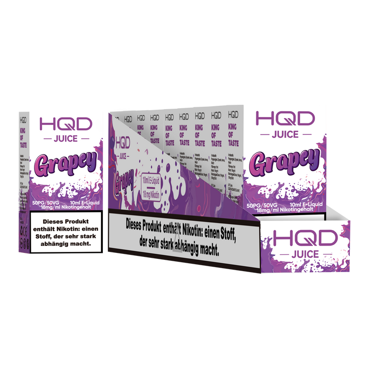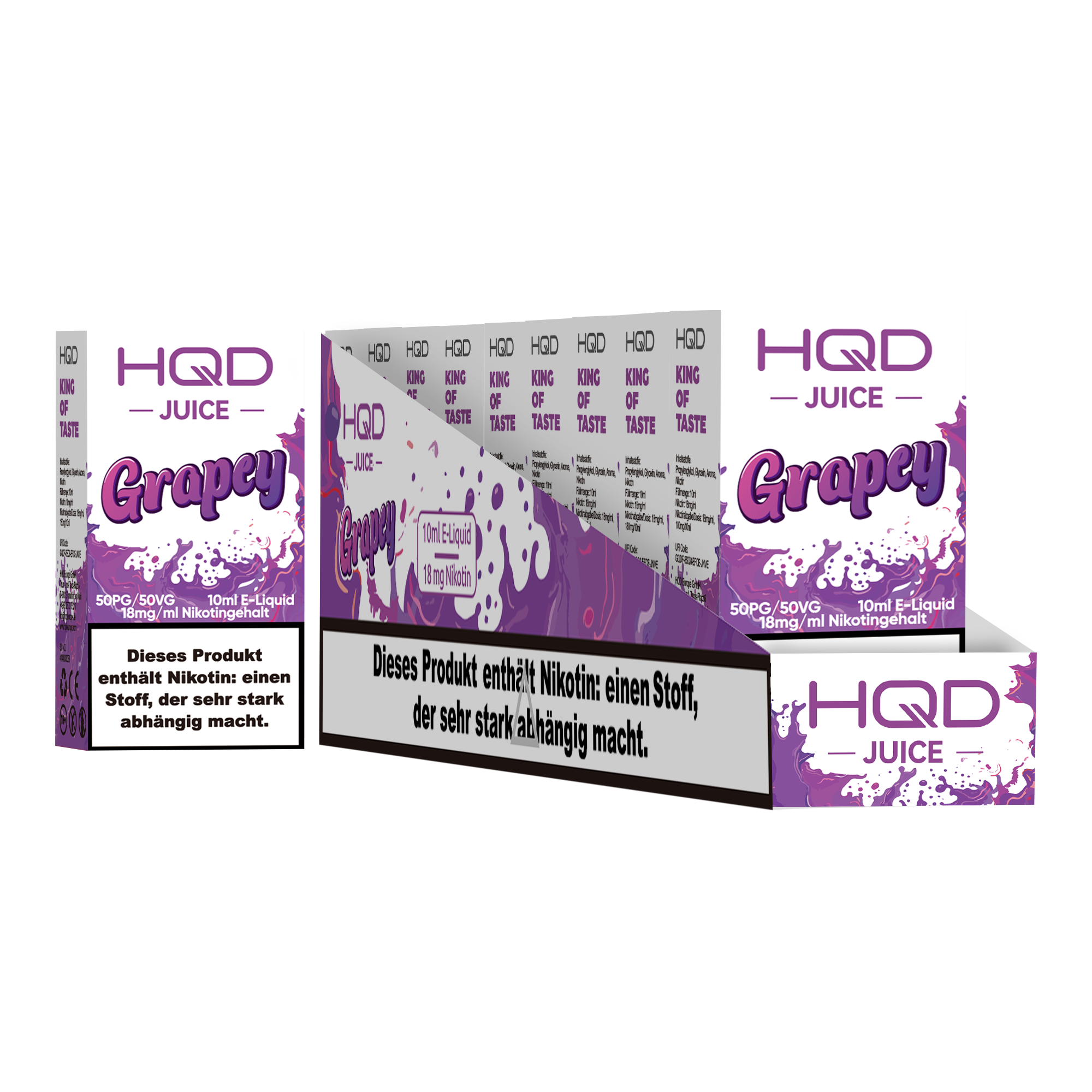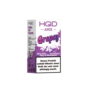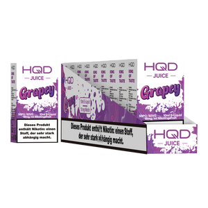 Produkthinweise: Die Verpackung der gelieferten Ware kann von der abgebildeten Verpackung abweichen, da der Hersteller jeder Zeit das Verpackungs-Design ändern kann. Bei Raumtemperatur vor direkter Sonneneinstrahlung geschützt lagern.HQD Juice Grapey 10ml Liquid 18mg Nikotin