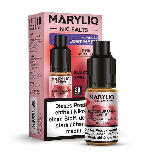 Produkthinweise: Die Verpackung der gelieferten Ware kann von der abgebildeten Verpackung abweichen, da der Hersteller jeder Zeit das Verpackungs-Design ändern kann. Bei Raumtemperatur vor direkter Sonneneinstrahlung geschützt lagern.Lost Mary 10ml Liquid 20mg Nikotinsalz Maryliq Blackcurrant Apple